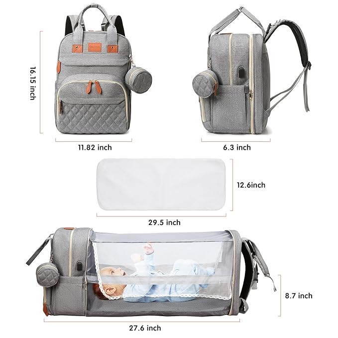 - 3-in-1 Functionality: Combines a diaper bag, foldable baby bed, and waterproof travel bag.